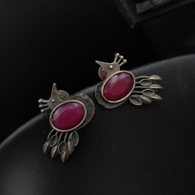 • Premium Designer Leaf Silver Look Like Replica Monalisa Stone Stud Earrings